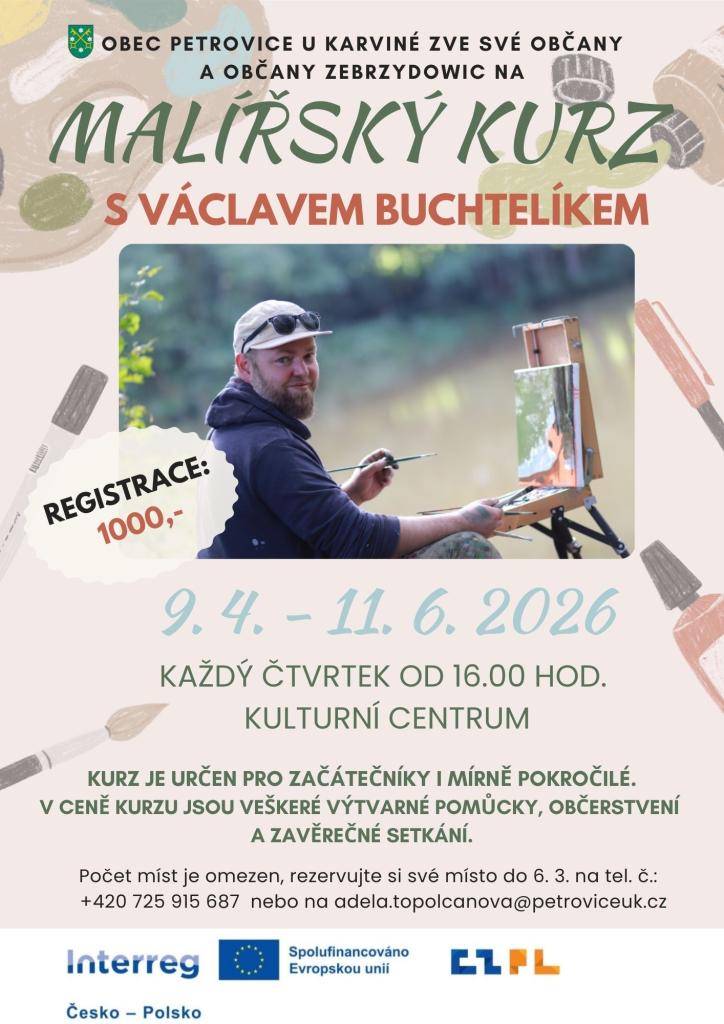 Kurz bude probíhat každý čtvrtek od 16.00 hod. V termínu od 9. 4. do 11. 6. 2026 v Kulturním centru. Cena kurzu je 1 000 Kč.